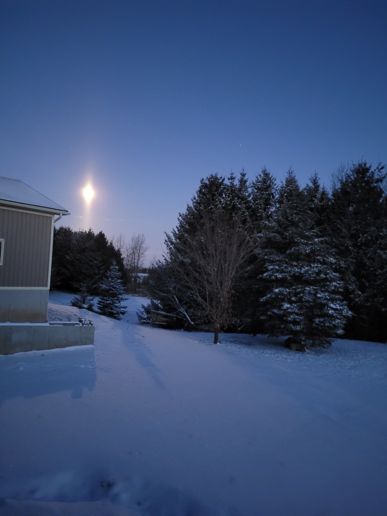 Isn’t this view gorgeous. I had to walk out onto our deck to capture the beauty. Just incredible, the moon rays streaming off the top and bottom of the bright full moon. So beautiful! I even checked to ensure my lens was clean! The moon beams were intense – so powerful.