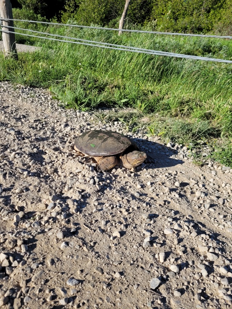 In another area I passed by this interesting creature. Turtles I find so fascinating. They move so slow, and thought out. Not in a rush, just going at their own pace. Never in a race with anyone. Ahhhh what we can all learn from a turtle! I had to pull over and coax it off the road. I was impressed at how calm the turtle was. I found a stick and gently patted it to get him moving.